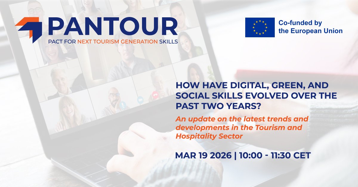 Skills in tourism and hospitality are changing fast. Digital. Green. Soft skills. Transversal skills and Technical skills. Two years ago, the sector was in a different position. Today? There is even more priority and center attention to the topic of Skills Development. Join the PANTOUR webinar...