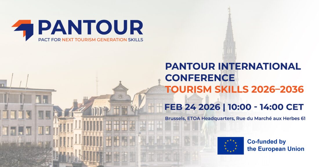On 24 February 2026 the Pact for Next Tourism Generation Skills (PANTOUR) consortium will organise the second international conference in Brussels. The international conference will be an opportunity to take stock of recent project deliverables, outputs and insights of skills development in tourism in Europe and to exchange on priorities and next steps in light of Europe’s digital and sustainable twin transition and skills initiatives. The event will take place at the Rue du Marché aux Herbes 61, in Bruxelles in collaboration with ETOA.