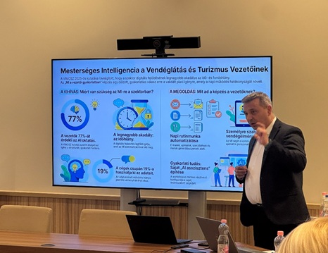 Image 4: István Détári (Head of the Artificial Intelligence Centre, Edutus University) presenting new short-cycle training programmes designed to support tourism SMEs in digital transformation